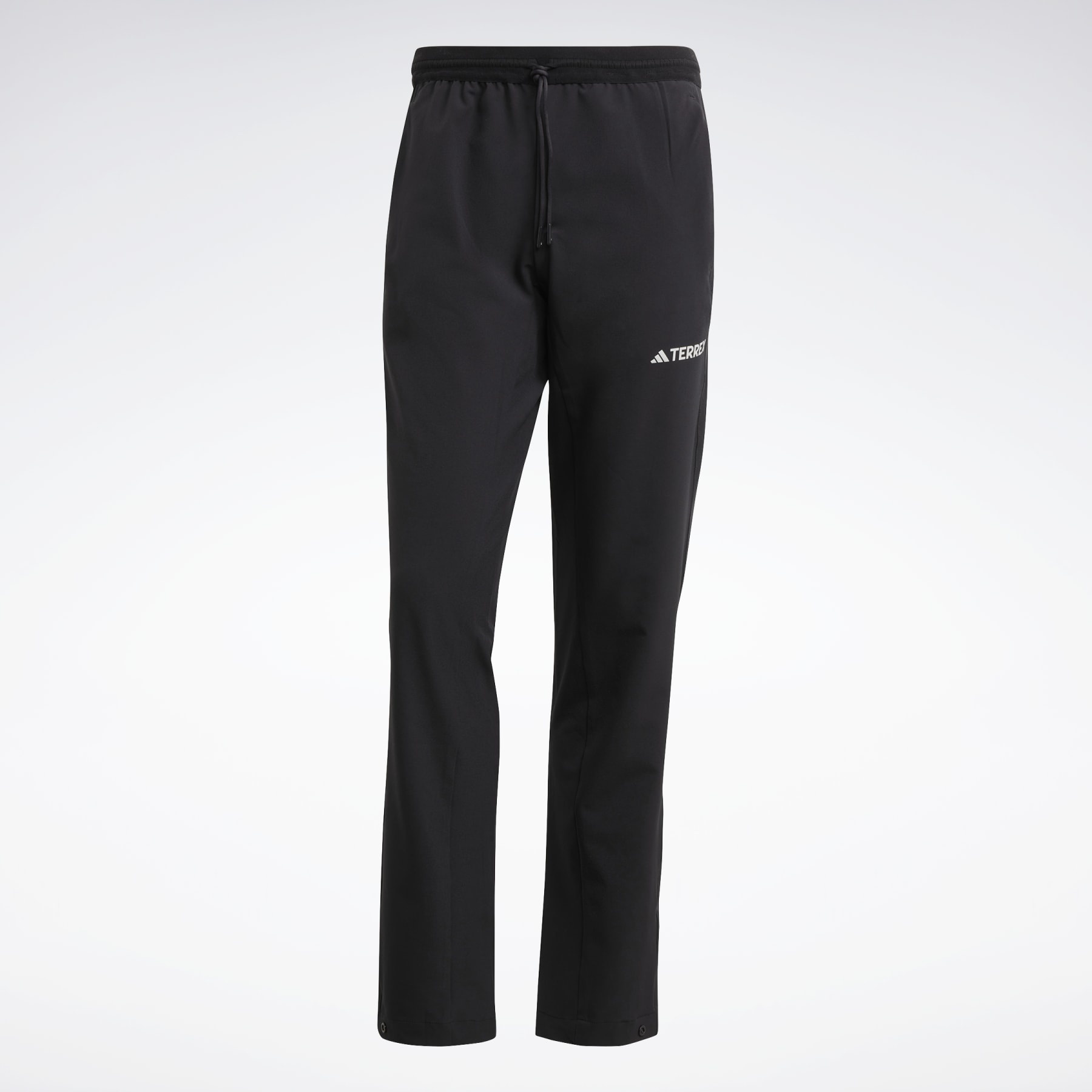 Hiking pants made in part with recycled materials. Explore an alpine meadow or scale a switchback with ease in these adidas hiking pants. An elastic waistband with a drawcord offers a customized fit, while the bottom hems can be snapped open or closed depending on the trail conditions. Versatile and functional, these pants are built for any mountain.Made with a series of recycled materials, and at least 70% recycled content, this product represents just one of our solutions to help end plastic waste. Details - Regular fit - Drawcord on elastic waist - 90% polyester (recycled), 10% elastane - Silicone print on waist - Side zip pockets - Snap-button adjustable hems - Imported - Product code: HN2953 - Product color: Black