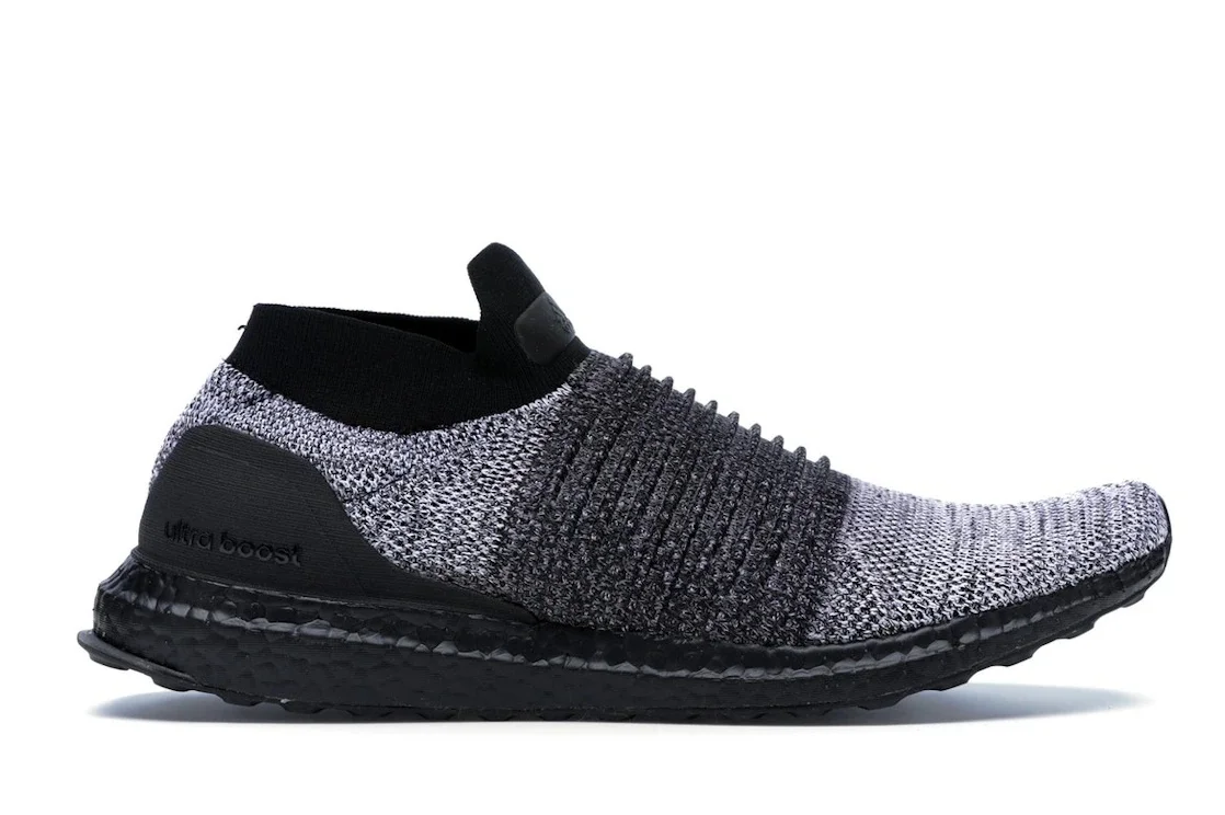The adidas Ultra Boost Laceless Mid Black Oreo has a white and black color combination that honors the name of the shoe, which is a sandwich cookie. This model lacks traditional laces, providing a streamlined appearance and snug fit. With Forged Primeknit construction on the midfoot for a supportive lock-down fit, the speckled Primeknit upper provides a compression fit to make up for its lack of laces. The crisp white of the molded heel counter and the Boost midsole contrasted with the solid black of the sock-like hue. This one forgoes caging, which is designed to support and hold the foot in place while running, in favor of ribbed knitting over the uppers. It also has a Continental rubber, offering excellent traction and durability. What we find interesting about the shoe is the gray Primeknit contrasting with a strong black bottom, ankle collar, and heel cups, the shoe has a dramatic overall appearance. The adidas Ultra Boost Laceless Mid Black Oreo was released on December 1st, 2017, and retailed for $200. - Style BB6137 - Colorway Core Black/Core Black/Footwear White - Retail Price 200 - Release Date 2017-12-01 - Featured false - Product Line adidas Ultra Boost