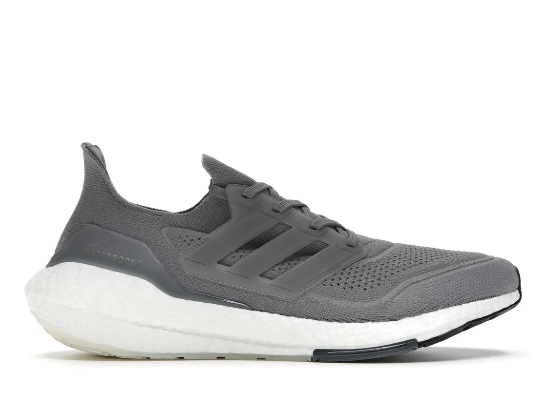 The adidas Ultra Boost 21 Grey White arrives in an all-grey body with a tech-knit finish sitting on a white sole adorned by a textured pattern. adidas uses its PRIMEKNIT technology on the Ultra Boost 21. Thus, the shoe’s upper features a recycled PRIMEBLUE material in crisp white knit. The solid weave finish of the mudguard breaks into a breathable surface on the vamp. The 3-Stripes of adidas, which join on the eye stay to make an overlay, appear in a synthetic material on the quarter panels. The heel stabilizer is in plastic and it curves near the counter to make a "U" shape. What makes the adidas Ultra Boost 21 Grey White stand out? Our experts have a soft spot for the sock fit of this shoe. While the breathable knit design ensures comfort, the grey lace closure ushers in a secure fit. When it was released on January 28th, 2021, this shoe had a retail price of $180. - Style FY0381 - Colorway Grey Three/Grey Three-Grey Four - Retail Price 180 - Release Date 2021-01-28 - Featured false - Product Line adidas Ultra Boost