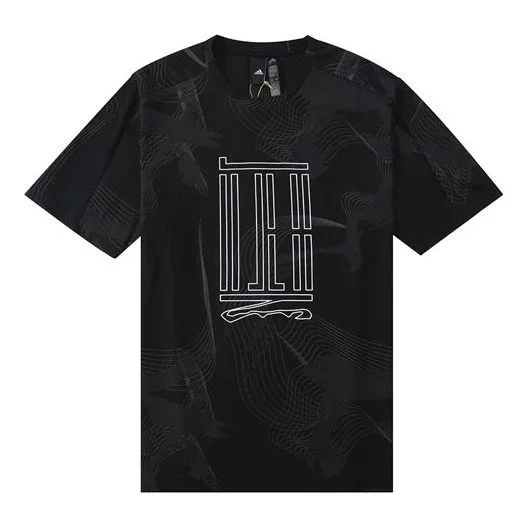 adidas Wj Aop Tee Pattern Printing Sports Training Casual Short Sleeve Black HE5140
