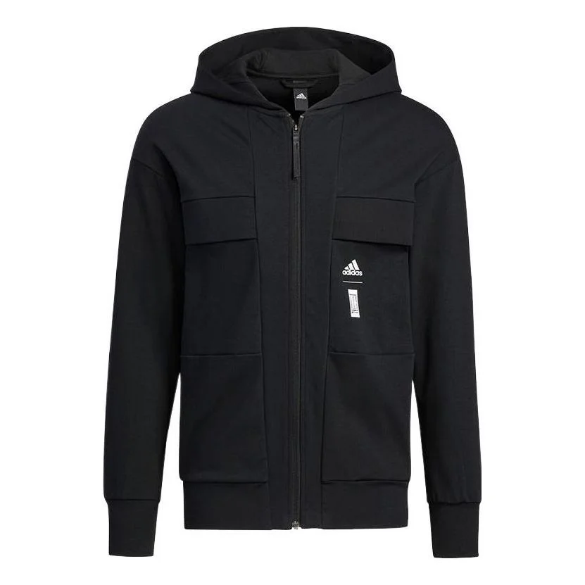 adidas WJ PO JKT Solid Color Knit Hooded Jacket Black HE5132