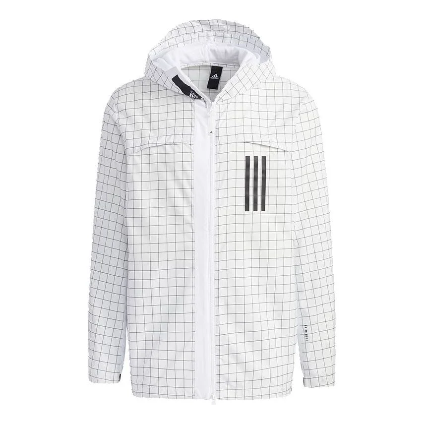 adidas WND Sports Plaid Windproof Hooded Jacket White GL8686