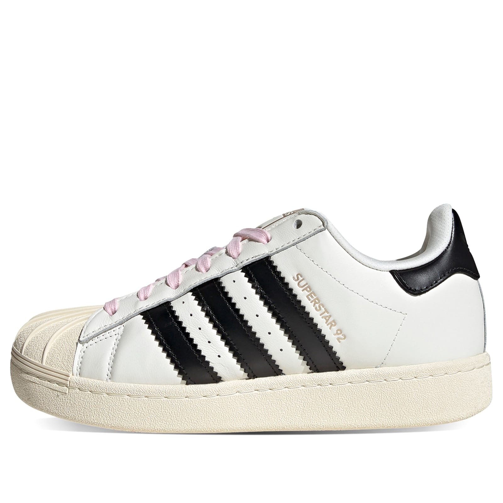 The Pharrell Williams x adidas Superstar 92 reinvents the iconic silhouette with bold, oversized details. Designed by Pharrell, the chunky leather design features inflated stripes, a beefed-up midsole, and the signature Shelltoe. Shiny gold branding and vibrant extra laces add striking flair. Packed in exclusive boxes, this playful yet premium style is set to dominate 2025's sneaker game. - Leather Uppers - Rubber Outsole - Reinforced Shelltoe - Padded Branded Tongue - Lace Up Closure - Serrated 3-Stripe Branding - Gold Foil Branding