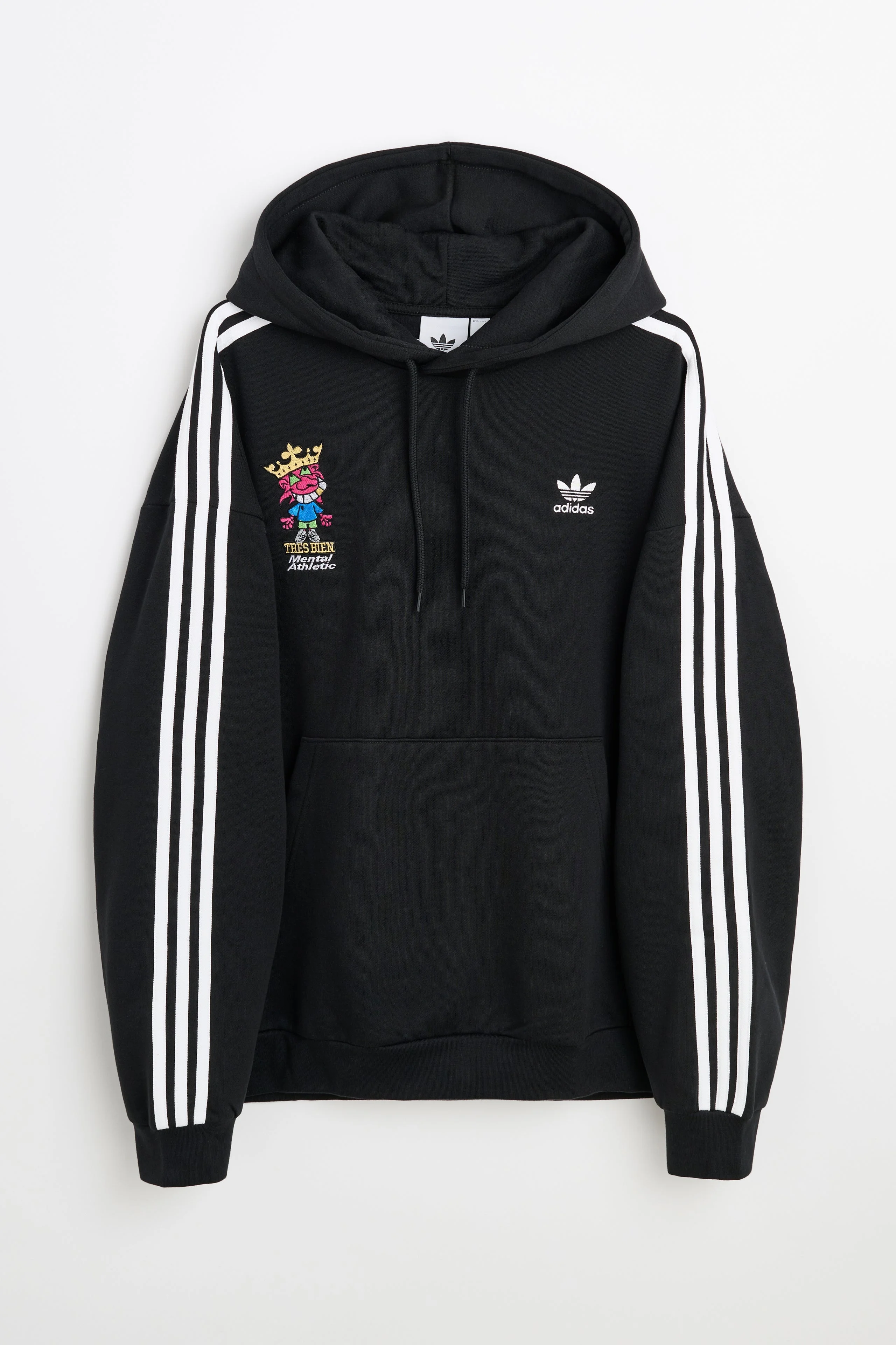 Hoodie from adidas x TRES BIEN x Mental Athletic. Made from a recycled cotton blend with a drawstring hood, kangaroo pocket, and ribbed cuffs and hem. Features adidas Trefoil and a TRES BIEN x Mental Athletic mascot embroidery on the chest. Details Black and white hoodie. Made in Pakistan from 70% recycled cotton and 30% recycled polyester.ART. NO: Size & fit Relaxed fit. Model wears a size L and measures 185 cm with a 83 cm chest.