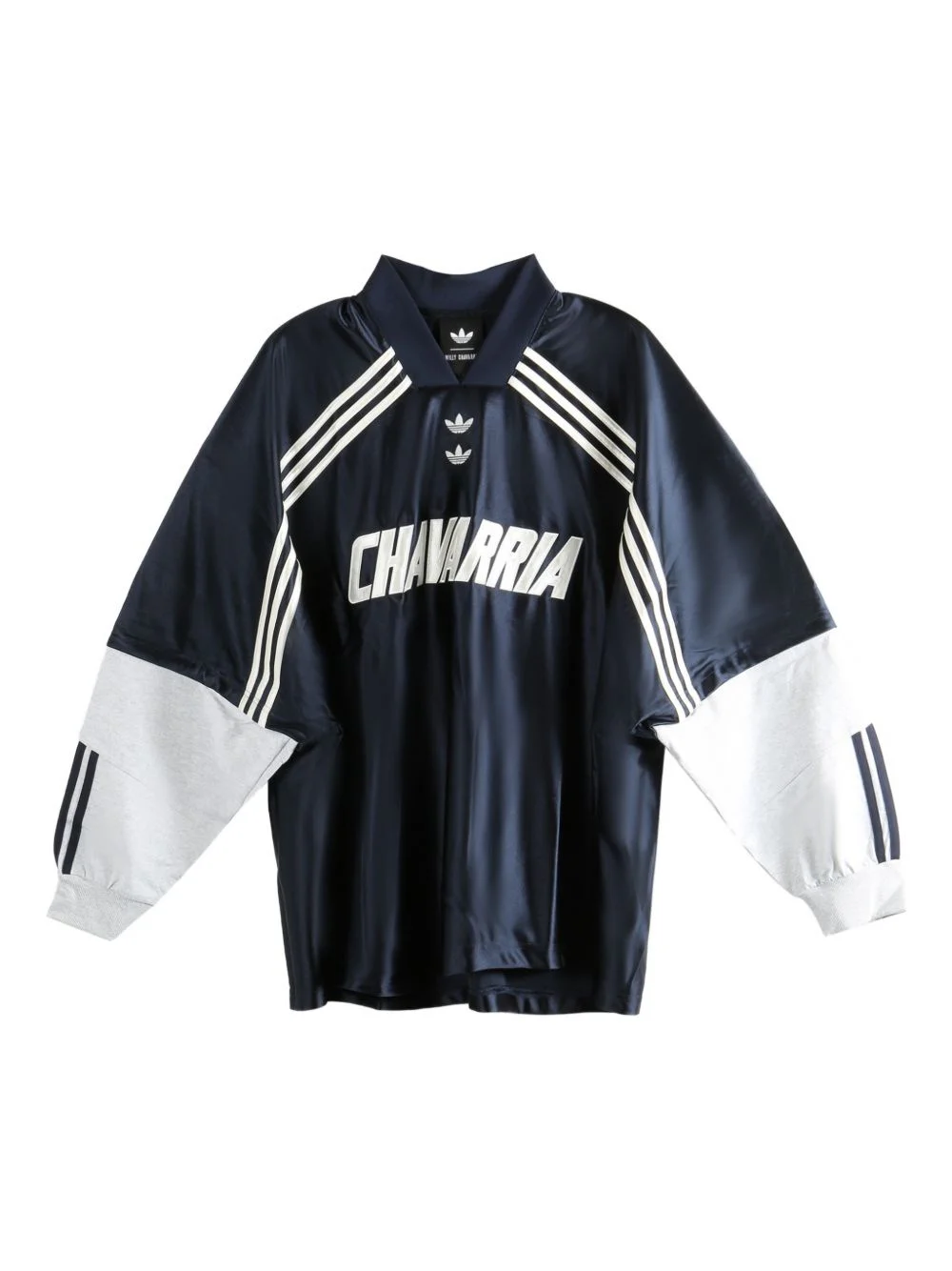 x Willy Chavarria Dazzle long-sleeve T-shirt Highlights - Navy blue - Stripes - Logo detail - Colour-block design Imported Composition Recycled Polyester 100% Washing instructions Read Manufacturer Guidelines