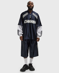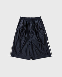 The adidas Chavarria Dazzle Shorts combine comfort and street style. Made from shiny material, they have a voluminous fit on the legs and offer maximum freedom of movement. An elastic waistband with drawstring, side zip pockets, and snap buttons ensure functionality. Embroidered Trefoil logos, Willy Chavarria lettering, and 3-Stripes branding complete the design. - Oversized fit - Elastic waistband with drawstring - Snap buttons on the sides of the legs - Shiny, shimmering material - Applied 3-Stripes branding on both sides - Two embroidered stacked Trefoil logos on the left leg - Zippered pockets on the front - Embroidered Willy Chavarria lettering on the right leg Article number: KD1800 Gender: men Color: LEGINK Material: 100% Polyester