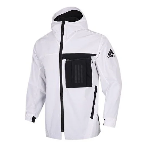adidas Zipper Cargo Woven Fleece Lined Jacket White FM9394