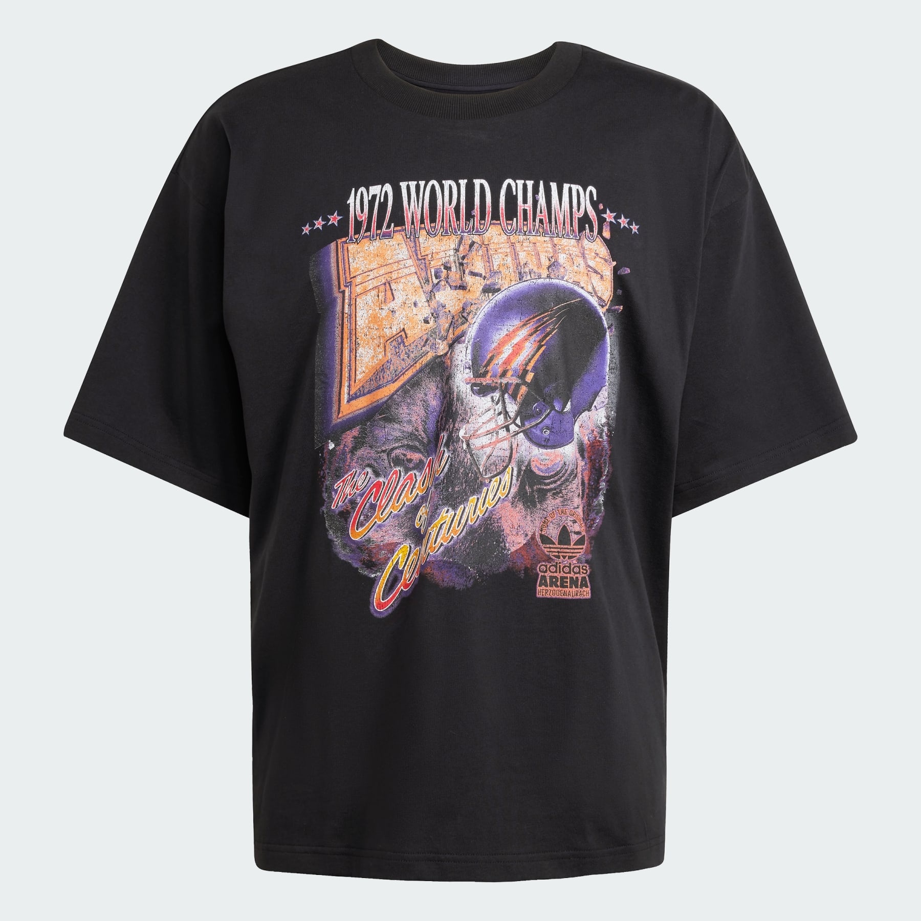 An oversize tee with a retro graphic. With sports, comes fans, and this adidas t-shirt embraces that energetic side of the culture with a bold graphic on the front. The colors and graphics create a nostalgic narrative centered around football. It has a vintage, washed look and feel — like a pristine shirt that made it through the decades. Details - Oversized fit - Ribbed crewneck - 100% cotton - Imported - Product code: JY6297 - Product color: Black