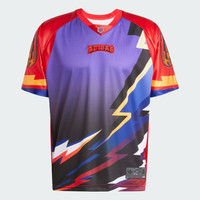 A bold jersey for expressive styling. Turning the dial up on expression, this adidas jersey embraces the world of sports with a strong graphic play that bursts with different colors. It plays with textures, too — shiny tricot panels on the sides and breathable mesh on the front. The loose shape drapes casually with a slightly shorter cut than expected that hits around the waist, similar to official football jerseys. Details - Loose fit - Ribbed V-neck - 100% polyester (recycled) - Side slits in hem - Imported - Product code: KB0307 - Product color: Better Scarlet