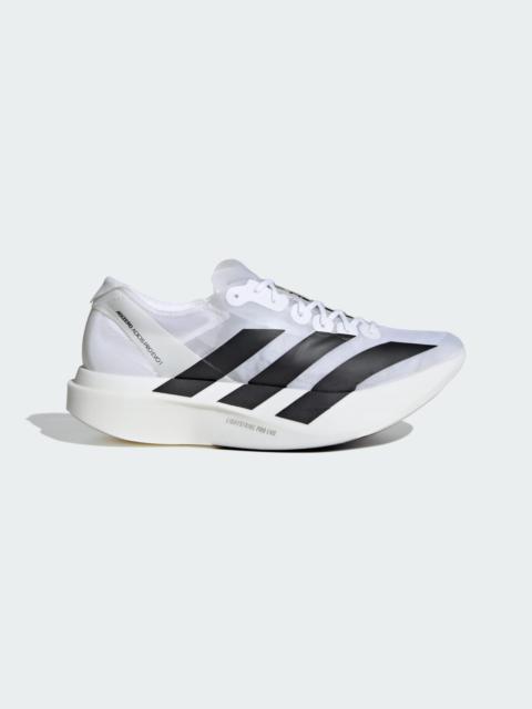Our lightest-ever race shoe, powered by innovation. Astonishingly light. Shamelessly fast. The adidas Adizero Adios Pro Evo 1 is a new class of race shoe, designed to help ambitious marathon runners leave it all on the course. It's 40% lighter than any race shoe we've created, weighing in at just 4.87 ounces of pure innovation. Lightstrike Pro foam is paired with cutting-edge outsole technology, featherlight mesh and a first-of-its-kind forefoot rocker that's lab-tested to improve running economy. The Adizero Adios Pro Evo 1 is the future of running, and it's ready to race. Details - Regular fit - Lace closure - Mesh upper - Forefoot rocker - ENERGYRODS - Lightstrike Pro cushioning - Weight: 4.87 ounces (size 9) - Midsole drop: 6 mm (heel: 39 mm / forefoot: 33 mm) - Imported - Product code: IH5564 - Product color: White / Black / Crystal White