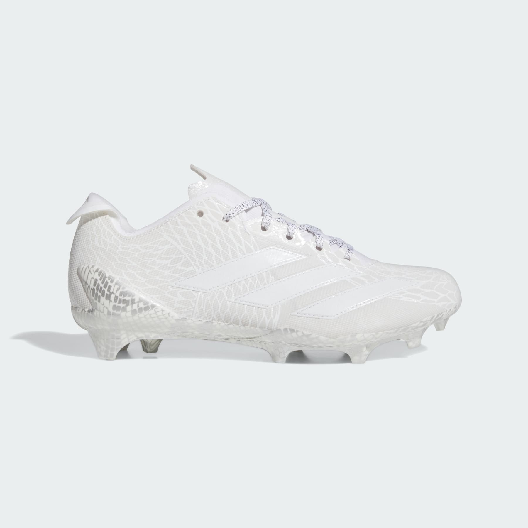 Supportive football cleats made in part with recycled materials. These football cleats are built specifically for players who break the game wide open with their speed. They feature a lightweight synthetic and textile upper that won't slow you down and they have a cleated outsole for outstanding traction on plants and cuts. A TPU heel clip provides additional critical support. This product features at least 20% recycled materials. By reusing materials that have already been created, we help to reduce waste and our reliance on finite resources and reduce the footprint of the products we make. Details - Regular fit - Lace closure - Synthetic and textile upper - Textile lining - Synthetic cleated outsole - Contains at least 20% recycled content - Imported - Product code: IE8858 - Product color: Cloud White / Cloud White / Silver Metallic
