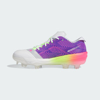 Lightweight baseball cleats made in part with recycled materials. For players looking to gain an edge, these adidas baseball cleats were designed for elite speed. With graphics inspired by retro arcade games, the Adizero Impact TPU Warp Speed cleats make you feel fast before even stepping into the batter's box. A Lightstrike midsole provides ultra-lightweight cushioning for covering the entire field at warp speed. Lateral support bands and a support spine on the cleated outsole support keep you stable through sharp turns and quick stops. This product features at least 20% recycled materials. By reusing materials that have already been created, we help to reduce waste and our reliance on finite resources and reduce the footprint of the products we make. Details - Regular fit - Textile upper - Textile lining - Lateral support bands - Lightstrike midsole - Synthetic cleated outsole - Contains at least 20% recycled content - Imported - Product code: IH3477 - Product color: Cloud White / Lucid Blue / Lucid Pink