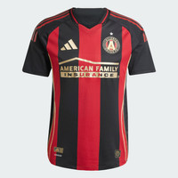 A performance jersey with ATL UTD's iconic stripes, made with recycled materials. 5-Stripes. Five pillars that represent Atlanta United FC's identity. The adidas authentic jersey players put on at the Mercedes-Benz Stadium, this soccer top displays ATL UTD's famous red and black home kit design. With premium fabric and golden details, it feels as good as it looks. A pair of sign-offs and a heat-applied club crest show you belong. This product is made with 100% recycled materials. By reusing materials that have already been created, we help to reduce waste and our reliance on finite resources and reduce the footprint of the products we make. Details - Slim fit - V-neck - 100% polyester (recycled) - AEROREADY - Mesh side panels - Atlanta United FC heat-applied crest - Imported - Product code: IV5076 - Product color: Black / Team Victory Red
