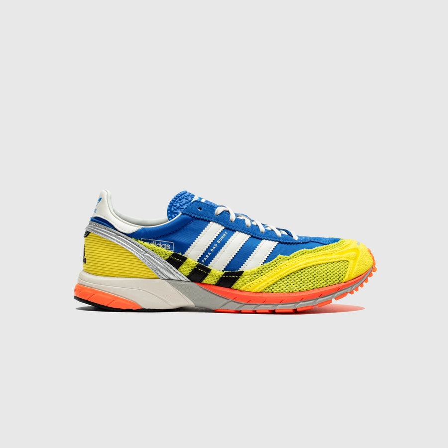 - JQ8757 - Blue/CWhite/ShoYel - Continuing a well-received partnership, Bad Bunny and Adidas combine the Adizero and SL72 into one - Nylon upper - Mesh, suede, and leather overlays - Textile tongue with a zig-zag stitch tongue tag - Three-stripe branding across the lateral and medial side walls - "PARA BAD BUNNY" printed on the medial side wasll - Double branding at the back heel - Reflective details - Rubber midsole - Rubber outsole
