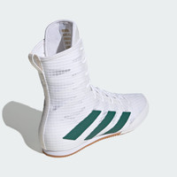 Breathable boxing shoes made in part with recycled materials. Tried and trusted. No stranger to the gym or the ring, adidas Box Hog boxing shoes keep your intensity high thanks to their breathable mesh upper and inner reinforcements. A die-cut EVA midsole wedge supports your midfoot for a stable stance. Underneath, the multidirectional outsole grips the mat for lightning-quick footwork. Made with a series of recycled materials, this upper features at least 50% recycled content. This product represents just one of our solutions to help end plastic waste. Details - Regular fit - Lace closure - Textile upper - Rubber outsole - Upper contains a minimum of 50% recycled content - Imported - Product code: IH2731 - Product color: Cloud White / Collegiate Green / Core Black