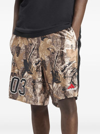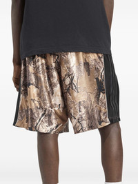 camouflage shorts Highlights - Brown - Camouflage print - Three stripes detail - Elasticated waistband - Side pockets Imported Composition Polyester 90%, Elastane 10% Washing instructions Machine Wash