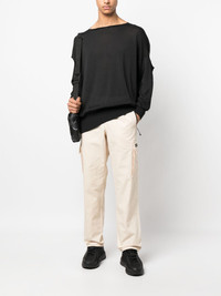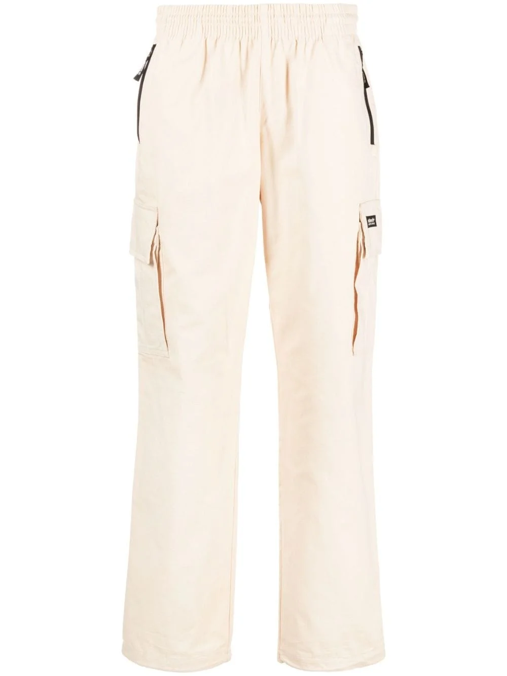 cargo pockets straight-leg trousers Highlights - Sand beige - Black - Organic cotton - Elasticated waistband - Two side zip-fastening pockets - Two side cargo pockets - Straight leg Imported Composition Organic Cotton 100% SIZE & FIT Model measurements Height 6 ft 1 in(1.86 m) Bust/Chest 37 in(94 cm) Hips 37 in(94 cm) Waist 28.7 in(73 cm) FittingInformation Designed for a relaxed straight leg, allowing a comfortable and loose fit over the leg The elasticated waist allows for a comfortable fit Made from a midweight non-stretch fabric, this piece offers minimal elasticity when worn This piece fits true to size – take your usual size