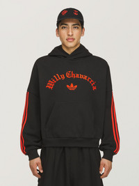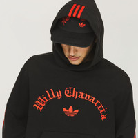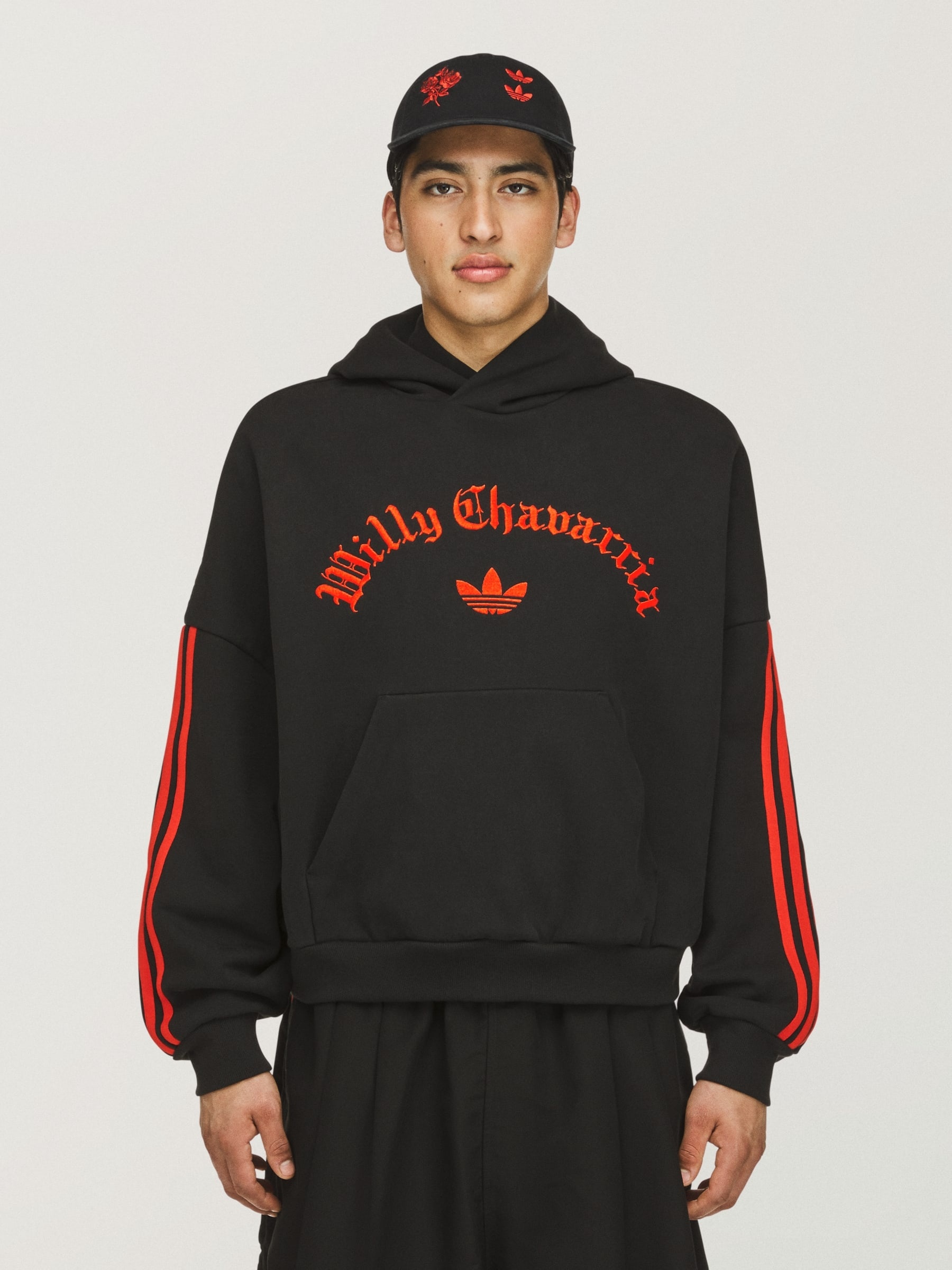 A premium heavyweight hoodie made in collaboration with Willy Chavarria. The Chavarria Heavyweight Hoodie is elevated in a French terry fabric to provide maximum comfort. The hoodie is designed with voluminous proportions in body and arms. Functional details include a ribbed waistband and cuffs, a hood and kangaroo pocket. Branding is symbolized by an embroidered Trefoil and Willy Chavarria wordmark on the center front, along with applied adidas 3-Stripes down the sleeves and top of hood. Details - Oversized fit - WC Trefoil jock tag - Jabbar puff print, Justice for All puff print - Branding: Embroidered WC Thorns Trefoil, puff print 3-Stripes on sleeve - Woven internal neck label - Imported - Product code: JW4052 - Product color: Black