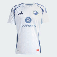 A supporter-focused Fire jersey that reps Chicago, made with recycled materials. Representing their home city on away days. The repeating Y-shaped pattern on this adidas Fire jersey nods to a Chicago River-inspired symbol visible throughout the Windy City. Created to keep fans comfortable and proud, the shirt features moisture-managing AEROREADY and a sewn-on club badge. A "312" sign-off above the hem ensures your soccer fandom is dialled in. This product is made with 100% recycled materials. By reusing materials that have already been created, we help to reduce waste and our reliance on finite resources and reduce the footprint of the products we make. Details - Slim fit - Crewneck - 100% polyester (recycled) - AEROREADY - Side mesh inserts - Chicago Fire sewn-on crest - Imported - Product code: IV5081 - Product color: Sky Tint