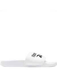 Classic "White Black" slides Highlights - White - Round open toe - Logo print to the front - Branded insole - Flat rubber sole Imported Composition Lining: Rubber 100% Outer: Rubber 100% Sole: Rubber 100%