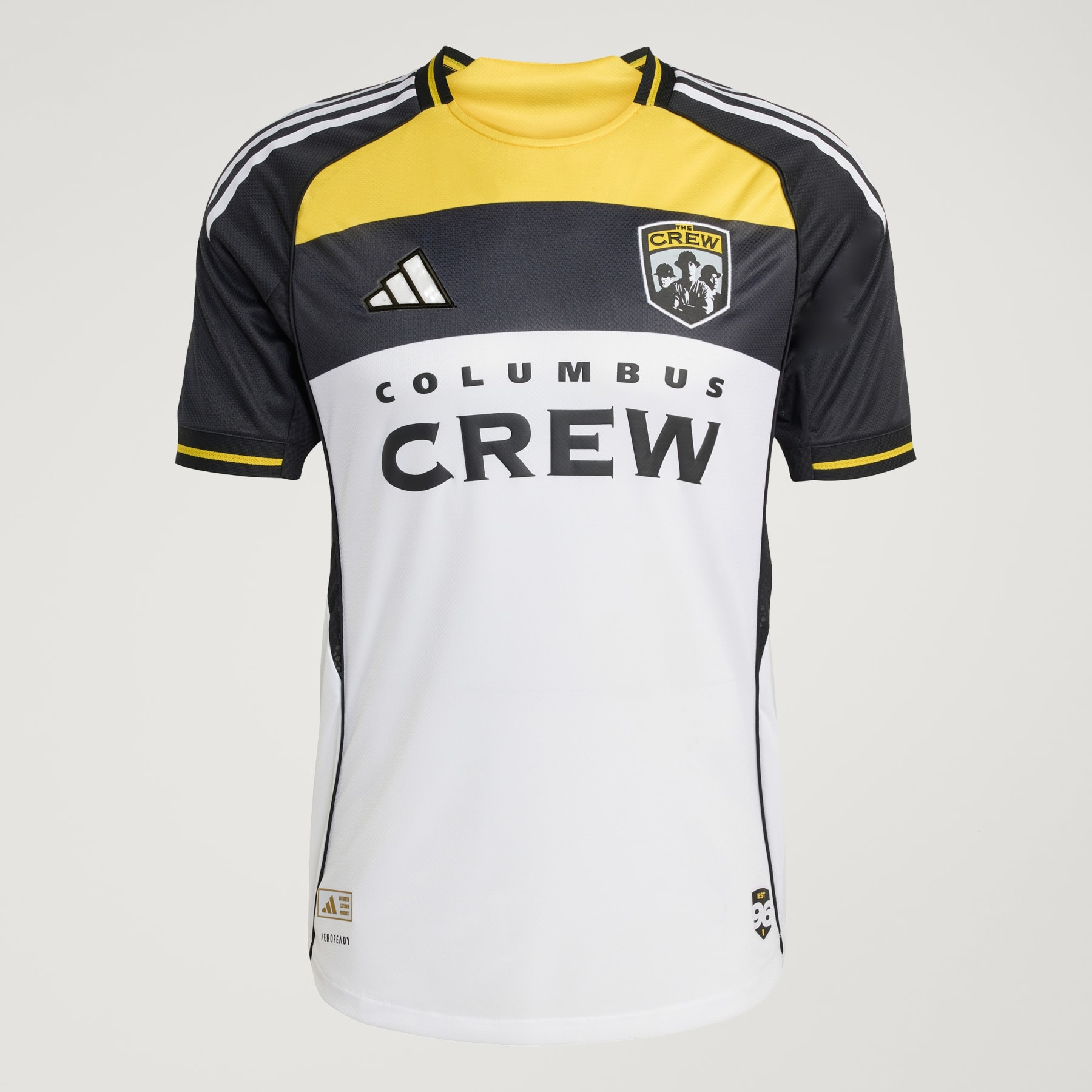 A Columbus Crew performance jersey that goes back to the beginning. Those bold blocks of color on the chest of this adidas Columbus Crew authentic jersey trace their origins back to the club's early kits. Starring with them, a stylized team name and vintage crest add more vibrant '90s flavor to the design. Pull this performance-focused shirt on when you want to represent your club on the soccer field and its moisture-managing AEROREADY will keep you coming back for more. Details - Slim fit - Crewneck - 100% polyester (recycled) - AEROREADY - Columbus Crew embroidered crest - Imported - Product code: JI7337 - Product color: White