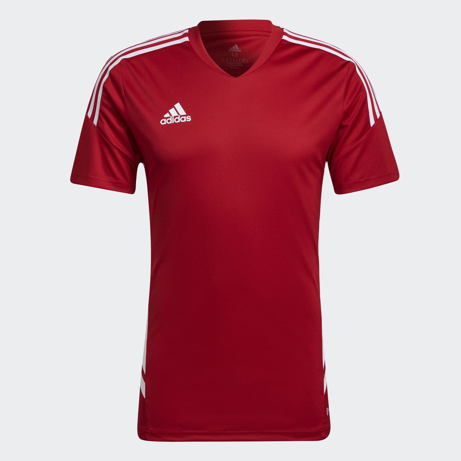 A soccer training jersey made in part with recycled materials. Created for top-level soccer, this adidas Condivo 22 jersey is all about comfortable movement. Its ventilating mesh side panels are shaped and positioned with male athletes in mind. Working hard to wick moisture from your skin, AEROREADY ensures you're always ready for more.Made with 100% recycled materials, this product represents just one of our solutions to help end plastic waste. Details - Slim fit - Ribbed V-neck - 100% polyester (recycled) - Side inserts: 100% polyester (recycled) - Moisture-absorbing AEROREADY - Imported - Product code: HA6286 - Product color: Team Power Red 2 / White
