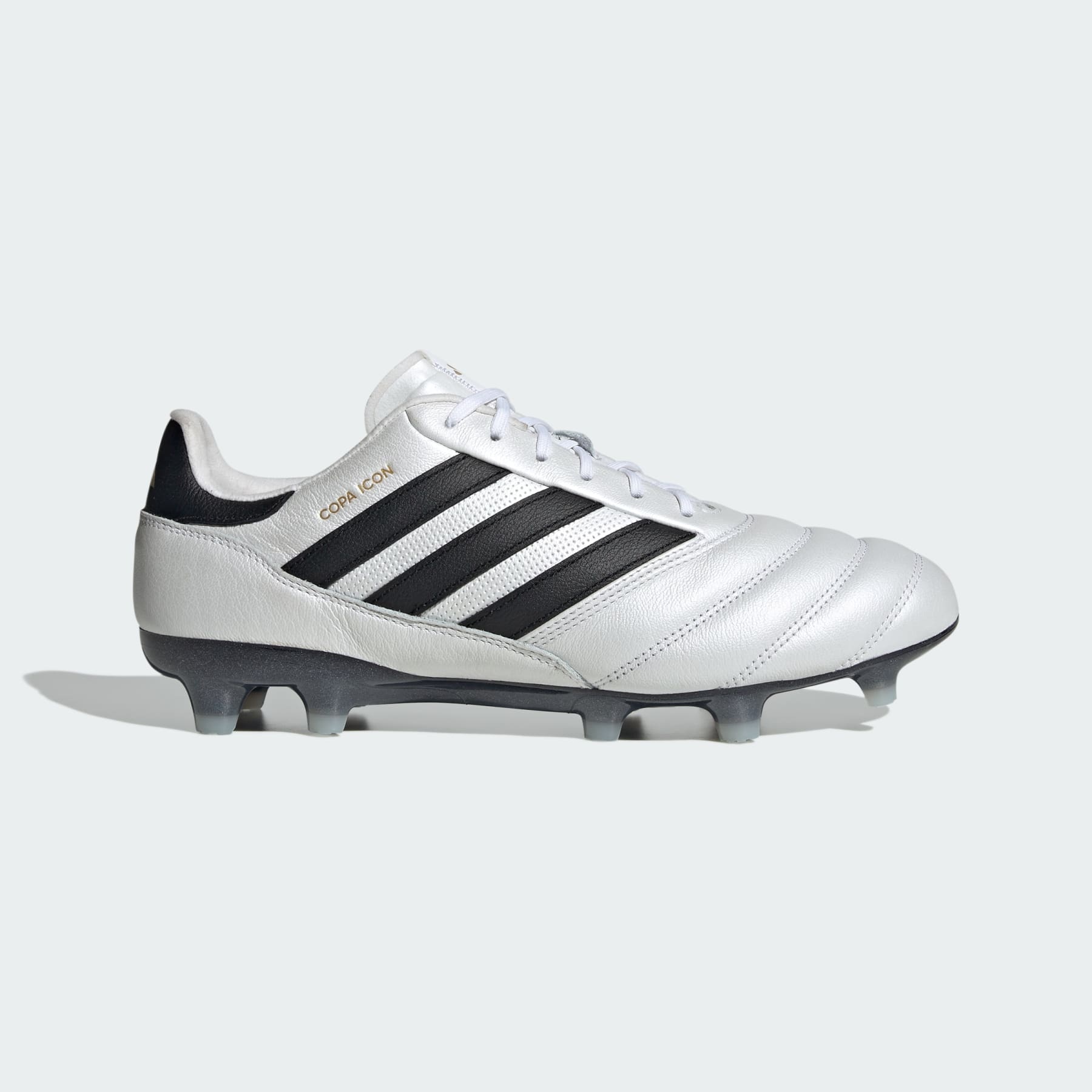Leather cleats that honor a legend, made in part with recycled materials. Lace up a soccer thoroughbred that pays homage to the iconic Copa Mundial. These adidas cleats offer a premium leather upper complete with the same stitched details and flawless touch. Down below, a firm ground outsole adds stability for unflustered playmaking on dry natural grass. This product features at least 20% recycled materials. By reusing materials that have already been created, we help to reduce waste and our reliance on finite resources and reduce the footprint of the products we make. Details - Regular fit - Lace closure - Premium leather upper - Soft polyurethane and microfiber suede tongue - Firm ground outsole - Contains at least 20% recycled content - Imported - Product code: IE7535 - Product color: Cloud White / Core Black / Gold Metallic