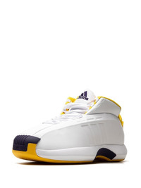 Crazy 1 "Lakers Home" sneakers Formerly named The Kobe, Kobe Bryant's basketball shoe in collaboration with adidas now goes by the name Crazy 1. Reappearing in a white, yellow and purple colourway, the pair feature a futuristic-like textile upper adorned with the unmistakable 3-Stripes logo to the side. Highlights - White/yellow7purple - Signature 3-stripes logo - Logo-embroidered tongue - Mesh panelling - Round toe - Front lace-up fastening - Branded heel counter - Rubber sole - These styles are supplied by a premium sneaker marketplace. stocking only the most sought-after footwear, they source and curate some of the most hard to find sneakers from around the world. Imported Composition Other fibres 100% SIZE & FIT Measurement HEEL 1.57 in(4 cm) Sole height 1.18 in(3 cm)