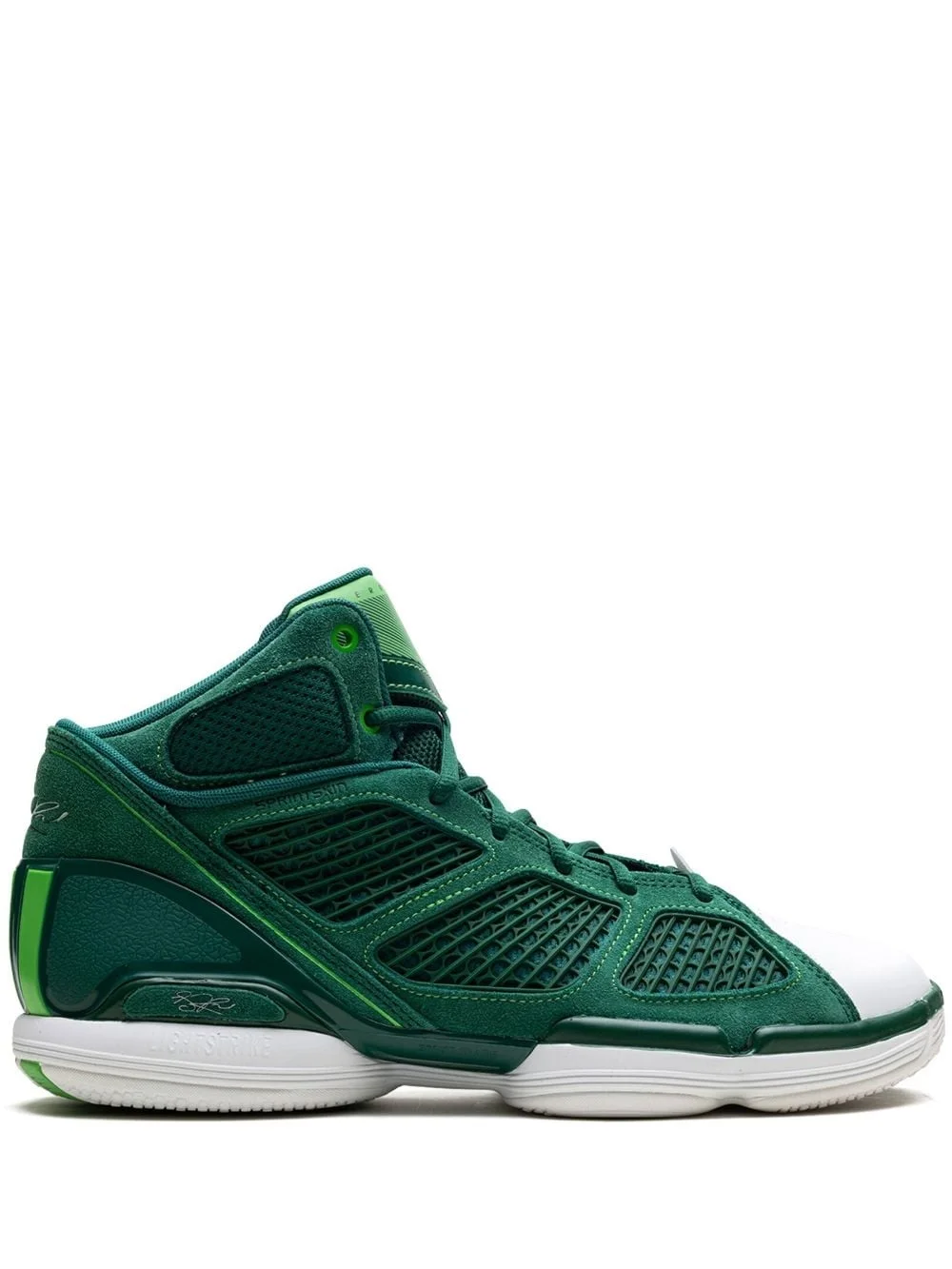 D Rose 1.5 "St. Patrick's Day (2022)" sneakers These sneakers from Adidas, the D Rose 1.5 'St. Patrick's Day (2022)' edition, boast a striking design with a predominantly green upper made of quality materials such as SprintSkin, leather, and suede. The tongues, upper eyelets, and three stripes branding on the heels add a pop of bright green to the mix, giving them a unique and distinguishable appearance. Highlights - Green - Leather/suede - Mesh panelling - Debossed logo to the front - Round toe - Front lace-up fastening - Branded insole - Rubber sole - These styles are supplied by a premium and authenticated sneaker marketplace. stocking only the most sought-after footwear, they source and curate some of the most hard to find sneakers from around the world. Imported Composition Leather 100%