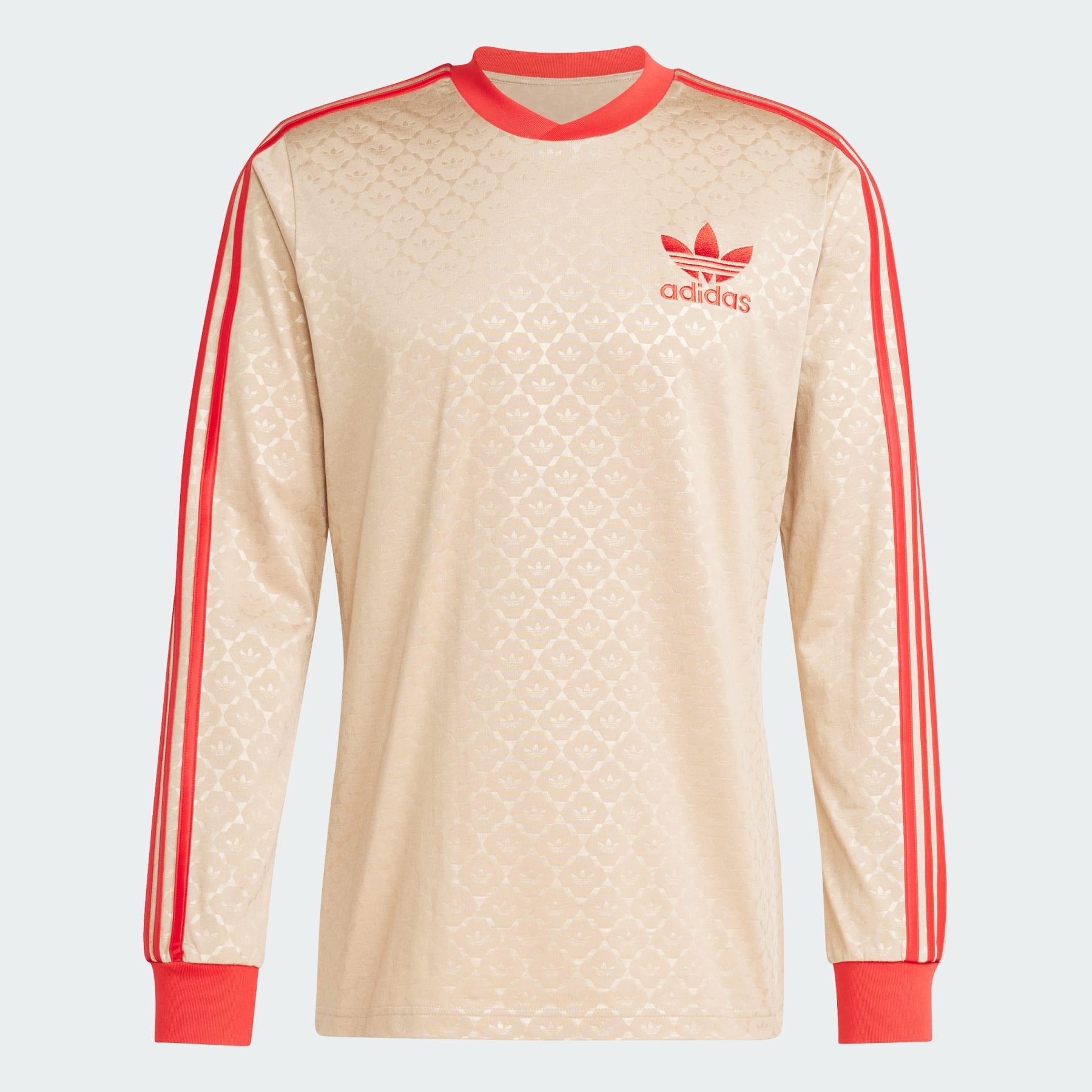 An eye-catching jersey created in collaboration with a soccer icon. Part of a premium, '70s-inspired soccer collection designed in collaboration with David Beckham. Keeping things classic with long sleeves, ribbed cuffs and a large Trefoil on the back, this adidas jersey makes a stylish addition to your wardrobe. Slip into its soft single jersey fabric and flash back to a soccer era that inspires one of the game's greatest players. Details - Slim fit - 63% cotton, 37% polyester (recycled) - Imported - Product code: IX5463 - Product color: Magic Beige