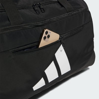 A medium duffel bag with great organization. This medium-sized duffel bag should be in every athlete's toolkit. Great for practice, play and travel, it's durably built with a water-resistant base to keep stuff dry. Plenty of zip pockets hold smaller items, and there are webbing attachments for clipping keys, a water bottle and more. There's even a vented pocket to air out dirty clothes or shoes. Details - Dimensions: 24.75" x 12.5" x 13" - 100% polyester - Water-resistant base material - Zip pocket with ventilation - Multiple zip pockets - Adjustable shoulder strap - Webbing attachment points - Lifetime Warranty, built to last - Imported - Product code: JJ7406 - Product color: Black