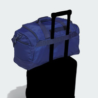 A small duffel bag with great organization. This small duffel bag is built for athletes on the go, whether headed to practice or a weekend travel tourney. Durably built to resist wear and tear, it's got a water-resistant base and a strap that lets you connect it to a luggage trolley. Multiple zip pockets and a large main compartment hold your gear. Webbing attachments let you clip stuff like keys or a water bottle. Details - Dimensions: 20.25" x 11.5" x 11.75" - 100% polyester - Water-resistant base material - Multiple zip pockets - Zip pocket with ventilation - Webbing attachment points - Adjustable shoulder strap plus luggage trolley strap - Lifetime Warranty, built to last - Imported - Product code: JJ7478 - Product color: Dark Blue / Rose Gold Metallic