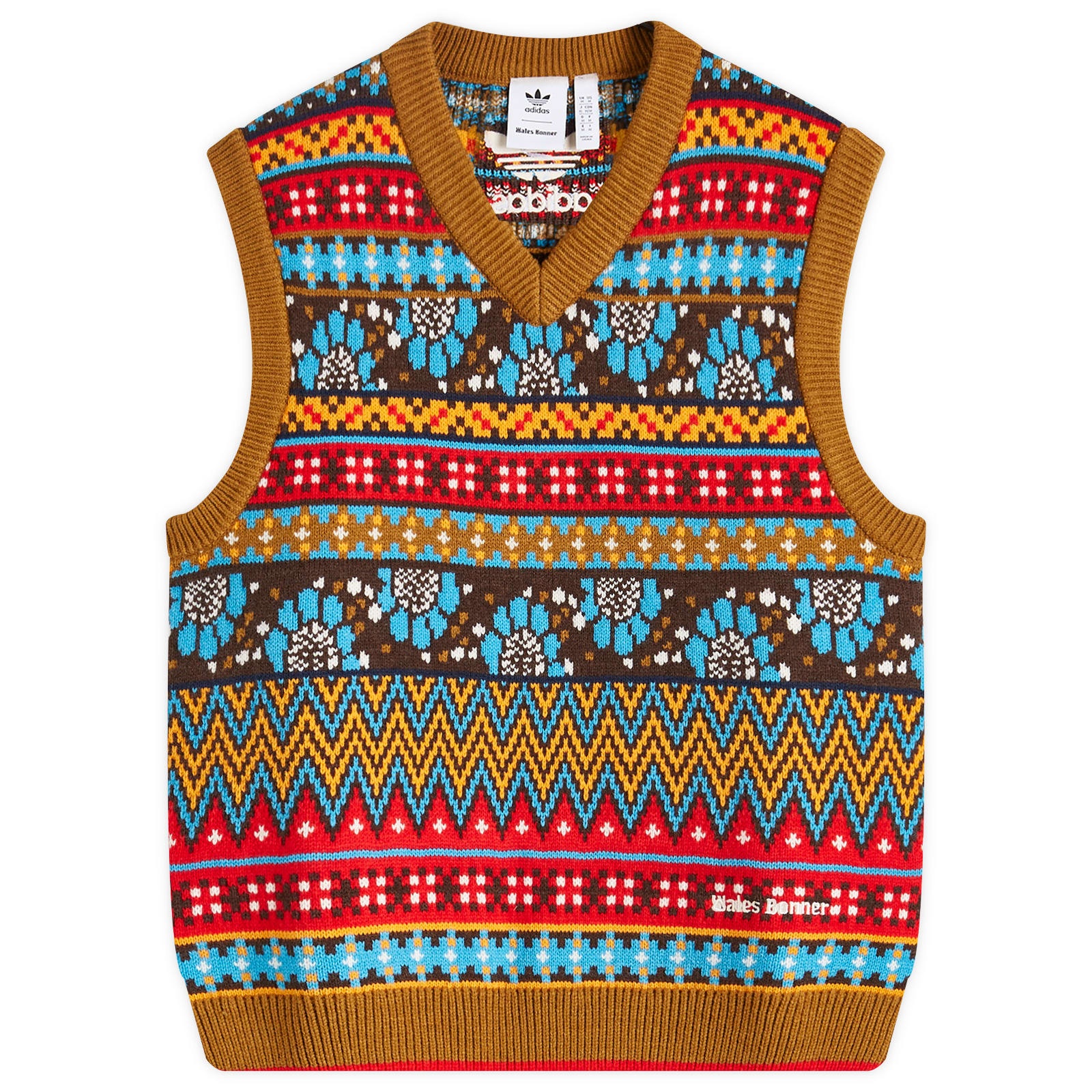 Layer up in style with the adidas x Wales Bonner Knitted Vest, from their latest AW24 collection. Crafted from a soft wool blend, this vibrant knitted vest boasts texture, colour and patterns that fuse tradition and modernity. Ribbed trims keep things comfy and embroidered branding is found to the front hem and back neck. - 40% Acrylic, 30% Recycled Polyester, 20% Recycled Polyamide, 10% Wool - Classic V-Neck - Ribbed Trims - Machine Washable - Embroidered Branding