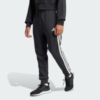 Mid-rise lounge pants made in part with a blend of recycled and renewable materials. Whether you're lounging at home or heading out, these adidas pants have you covered. The soft French terry build keeps you comfortable, and the 3-Stripes down the sides add a sporty finish. With a modern, tapered fit, these pants are an everyday essential. By choosing recycled, we are able to reuse materials that have already been created, which helps to reduce waste. Renewable materials choices will help us to remove our reliance on finite resources. Our products made with a blend of recycled and renewable materials feature at least 70% total of these materials. Details - Regular fit - Drawstring closure - 55% cotton, 36% polyester (recycled), 9% viscose - Ribbed cuffs - Tapered legs - Contains a minimum of 70% recycled and renewable content - Imported - Product code: JD1881 - Product color: Black / White