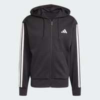 A cozy 3-Stripes hoodie made in part with a blend of recycled and renewable materials. The perfect blend of cozy and sporty, this adidas hoodie is an ideal layer for laid-back days. Ribbed cuffs provide a snug fit while fleece fabric keeps you warm. An embroidered adidas Badge of Sport and signature 3-Stripes showcase an effortless athletic aesthetic. This versatile pullover transitions easily from couch to coffee shop and everywhere in between. By choosing recycled, we are able to reuse materials that have already been created, which helps to reduce waste. Renewable materials choices will help us to remove our reliance on finite resources. Our products made with a blend of recycled and renewable materials feature at least 70% total of these materials. Details - Regular fit - Full zip with drawcord-adjustable hood - 55% cotton, 36% polyester (recycled), 9% viscose - 95% cotton, 5% elastane - Drop shoulders - Kangaroo pockets - Ribbed cuffs and hem - Contains a minimum of 70% recycled and renewable content - Imported - Product code: JD1870 - Product color: Black / White