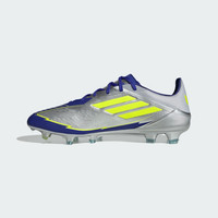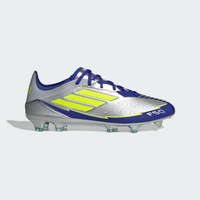 Make Messi moves in F50 firm ground cleats made in part with recycled materials. Legendary F50 pace. Mesmerizing Messi skills. Part of a range built to match the GOAT's on-field preferences, these adidas Pro soccer cleats have a flexible HybridTouch upper that offers a comfortable fit. A specialist outsole keeps you agile on firm ground. This product features at least 20% recycled materials. By reusing materials that have already been created, we help to reduce waste and our reliance on finite resources and reduce the footprint of the products we make. Details - Regular fit - Lace closure - HybridTouch upper - Firm ground outsole - Contains at least 20% recycled content - Imported - Product code: JR8023 - Product color: Silver Metallic / Solar Yellow / Lucid Blue