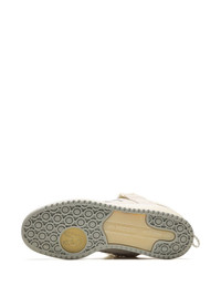 x Bad Bunny Forum Low "White" sneakers adidas has teamed up with Puerto Rican rapper and singer, Bad Bunny, for a new take on the Forum Low sneakers. This pair is crafted from a mix of calf leather and suede, in cream and light grey hues, and features a buckle ankle strap for a secured fit. Highlights - Cream white/light grey - Calf leather/calf suede - Signature 3-stripes logo - Round toe - Front lace-up fastening - Logo patch at the tongue - Front touch-strap fastening - Branded insole - Rubber sole - These styles are supplied by a premium sneaker marketplace. stocking only the most sought-after footwear, they source and curate some of the most hard to find sneakers from around the world. Made in Italy Composition Leather 100%