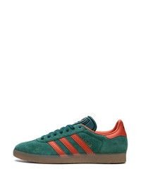 Gazelle "Collegiate Green" sneakers From the '60s to the present, the adidas Gazelle is back - this time with a gum rubber sole. This model features a classic silhouette made from green suede while the iconic 3-Stripes stand out on the sides in orange. Highlights - Dark green/orange - Suede/leather - Signature 3-stripes logo - Logo print to the side - Contrasting heel counter - Round toe - Front lace-up fastening - Logo-debossed tongue - Branded insole - Gum-rubber sole - These styles are supplied by a premium and authenticated sneaker marketplace. stocking only the most sought-after footwear, they source and curate some of the most hard to find sneakers from around the world. Imported Composition Suede 100% SIZE & FIT Measurement HEEL 0.98 in(2.5 cm) Sole height 0.59 in(1.5 cm)