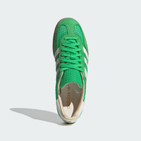 The indoor training classic with a leather-lined textile upper. Riding a wave of authentic adidas Originals heritage, these Gazelle Indoor Shoes give you the advantage of their vintage style and casual vibes. Modeled after the original indoor training shoe, this version is distinguished by its wide-hole, mono mesh material. Overlays on the toe cap, heel tab and laces add structure, and a smooth leather lining makes the shoes a joy to slip on. The translucent gum rubber sidewall wrap stays true to the original, while the Trefoil-shaped traction pattern keeps you grounded. Details - Regular fit - Lace closure - Textile and synthetic upper - Leather lining - Rubber outsole - Imported - Product code: JH5417 - Product color: Energy Green / Off White / Magic Beige