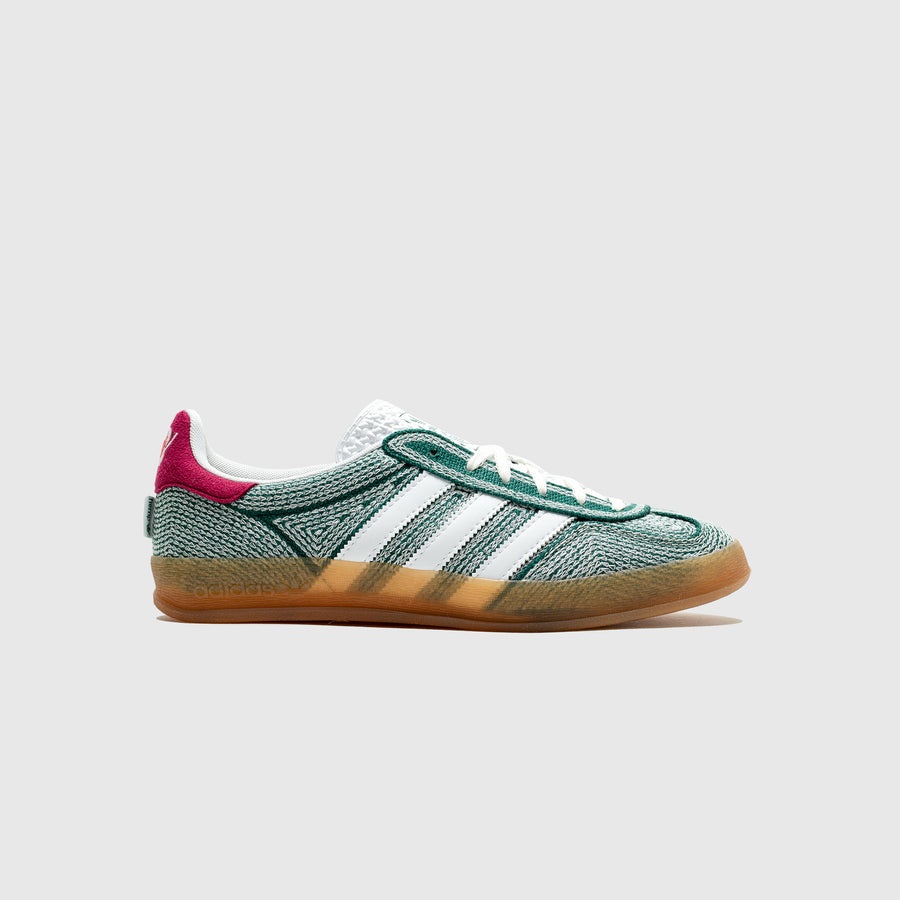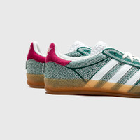 - IG1456 - Green/White/Gum - Adidas and Sean Wotherspoon realign for a fresh, DIY take on the Gazelle Indoor. - Woven hemp upper - Contrast stitching detail throughout - Textured tongue with printed branding - Three-stripe leather detailing - Embroidered logo on the heel - "HEMP" branded label on the heel - Semi-translucent gum Outsole