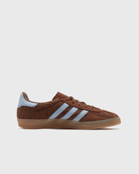 The adidas Gazelle indoor shoes were initially introduced as an alternative for indoor training and have long since become absolute icons. This version reinterprets the classic look - with a woven upper and the iconic 3-Stripes. The transparent gum sole offers both an authentic indoor sports look and grippy traction on the go. - Lace-up fastening - Leather and textile upper - Rubber outsole Article number: JS1417 Gender: men,women Color: PREBRN/CLESKY/GUM3 Material: 30% Rubber, 70% Synthetic/Textile