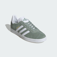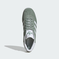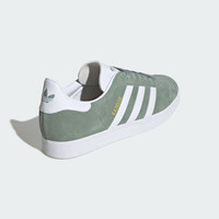 Timeless sneakers that never go out of style. Step into an iconic look with these adidas Gazelle shoes. While the 1970s original was made for sport, over the years the Gazelle trainer was adopted by B-boys and soccer fans, '90s skaters and indie rockers. Add your own retro flair to any outfit with the premium leather upper and minimalist design. Underneath, a grippy rubber outsole offers trusted traction. Details - Regular fit - Lace closure - Leather and synthetic upper - Synthetic lining - Rubber outsole - Imported - Product code: JH5384 - Product color: Silver Green / Cloud White / Gold Metallic