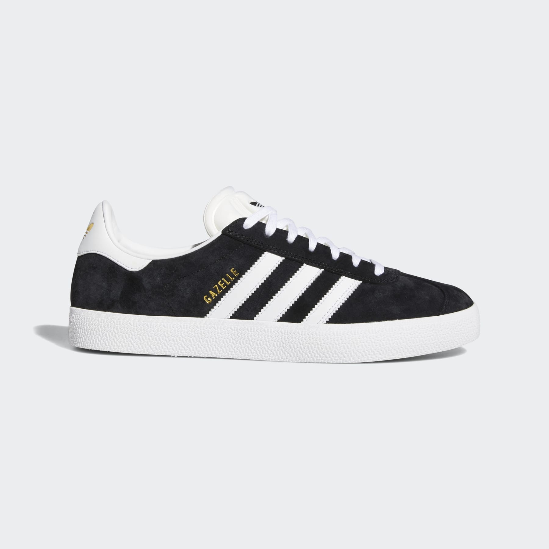 Classic Gazelles designed for skateboarding. A skateboarding version of the classic adidas Gazelle sneakers, these shoes have higher foxing tape and a super grippy outsole. A double-layered toe adds durability, while a molded sockliner offers an elevated fit. Details - Lace closure - Premium suede upper - Adituff toe reinforcement and double-layered toe for increased durability - Gazelle skateboarding shoes - Rubber outsole - Geoflex outsole for superior grip - Imported - Product code: FX6563 - Product color: Core Black / Cloud White / Gold Metallic