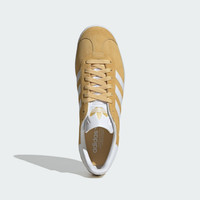Timeless sneakers that never go out of style. Step into an iconic look with these adidas Gazelle shoes. While the 1970s original was made for sport, over the years the Gazelle trainer was adopted by B-boys and soccer fans, '90s skaters and indie rockers. Add your own retro flair to any outfit with the premium leather upper and minimalist design. Underneath, a grippy rubber outsole offers trusted traction. Details - Regular fit - Lace closure - Leather and synthetic upper - Synthetic lining - Rubber outsole - Imported - Product code: JH5382 - Product color: Oat / Cloud White / Gold Metallic