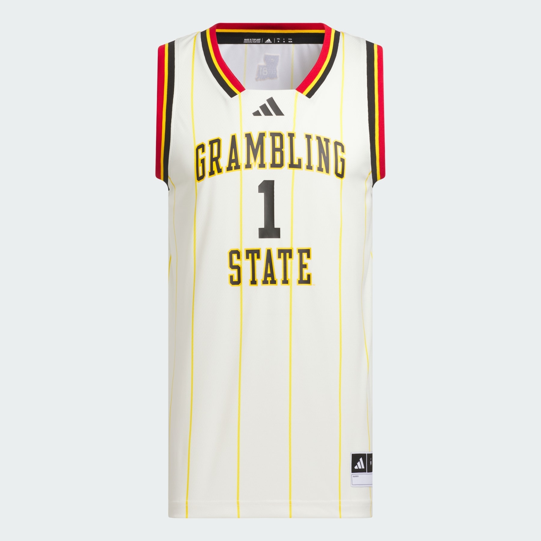 A Tigers jersey made from recycled materials. Show off for your squad when they hit the hardwood. This Grambling State jerseys from adidas is built to keep you comfortable whether you wear it while getting shots up in the gym or watching from the stands on game day. Tigers graphics and team colors provide an official finish. This product is made with 100% recycled materials. By reusing materials that have already been created, we help to reduce waste and our reliance on finite resources and reduce the footprint of the products we make. Details - Slim fit - Round neck - 100% polyester (recycled) - Mesh side panels - Tigers heat-applied graphic - Imported - Product code: JI9364 - Product color: Cream White / Team Colleg Gold