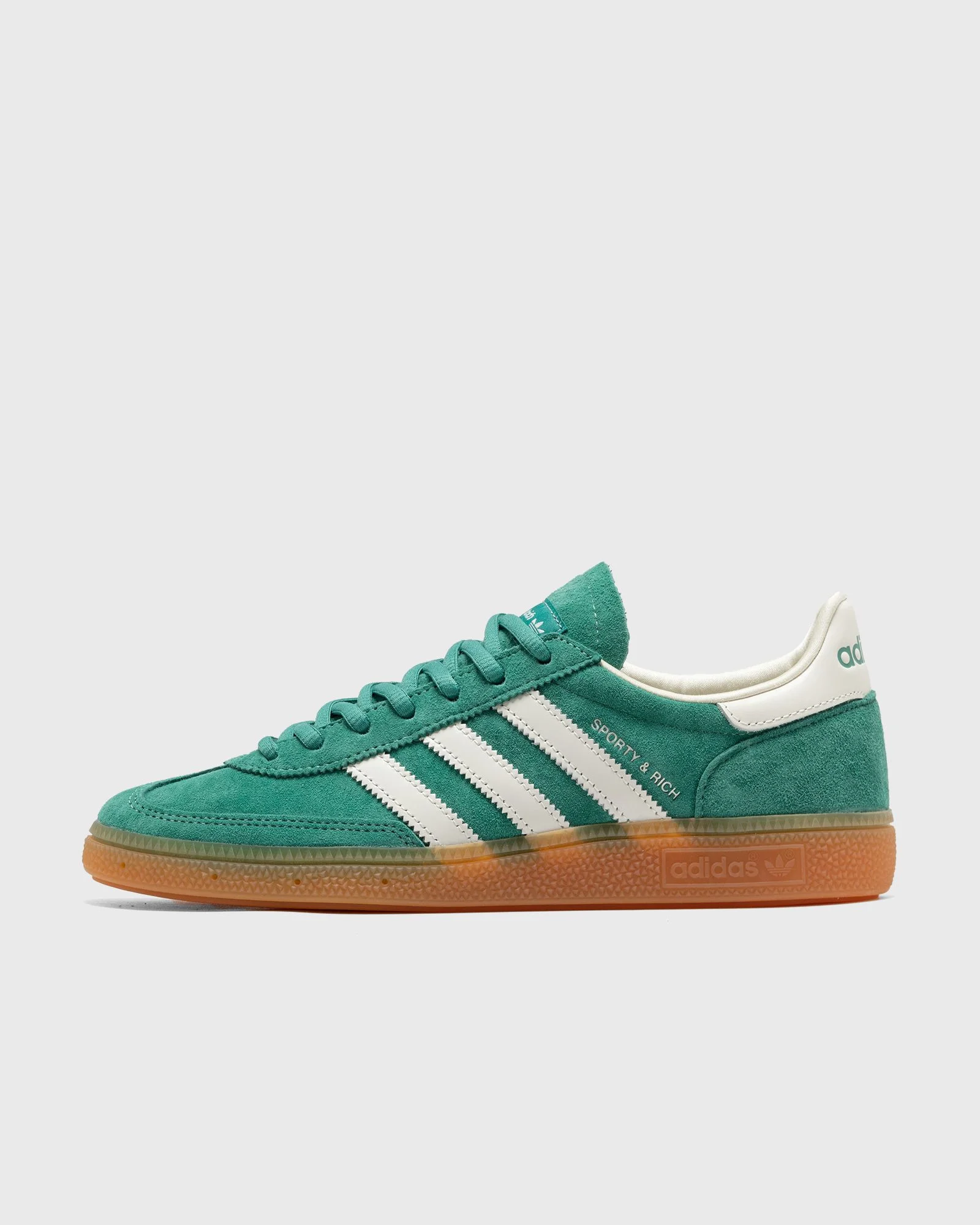 High-quality minimalism meets decades-old tradition in this adidas Handball Spezial shoe from the collaboration with Sporty & Rich. Inspired by vintage styles, it exudes clean retro vibes with its soft leather upper, rubber outsole and textile lining. The versatile design makes these trainers perfect for any occasion. - Leather upper - Textile lining - Rubber outsole Article number: IH2148 Gender: men,women Color: PANTON/CWHITE/GUM2 Material: Full: 100% Leather/Textil