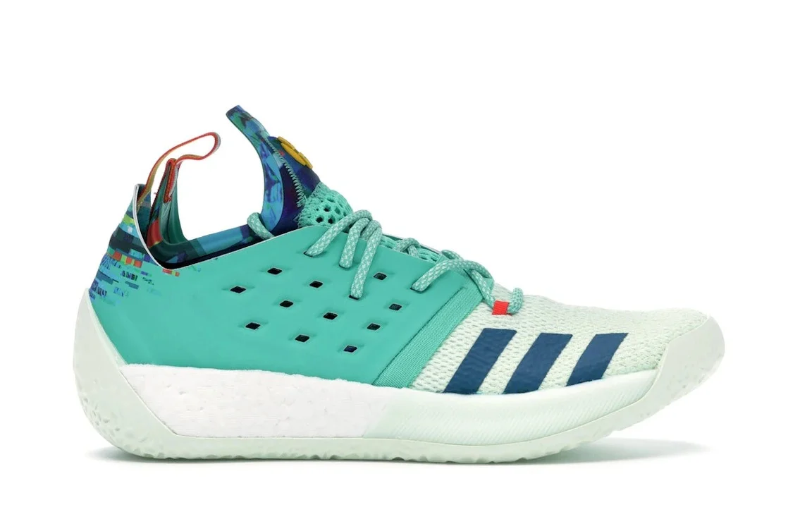 The adidas Harden Vol.2 Vision All Star (2018) is a special edition basketball sneaker that was released as part of the All-Star Weekend collection in 2018. It is part of the signature line of shoes released by adidas in collaboration with NBA star James Harden. The shoe has a colorful upper which is predominantly covered in white on the forefoot and a green hue from the midfoot going rearwards. The green hue is also complemented by multicolor geometric graphics on the inner side, while the outer side remains plain. It is constructed using Forgefiber material which offers a sock-like fit, keeping your feet comfortable at all times. Our favorite feature of the adidas Harden Vol.2 Vision All Star (2018) is the midsole which uses Boost cushioning to provide responsive cushioning and energy return, catering to the dynamic movements on a basketball court. The shoes were initially released at the retail price of $140 on February 16, 2018. - Style B28106 - Colorway White/Green/Multi-Color - Retail Price 140 - Release Date 2018-02-16 - Featured false - Product Line adidas Harden