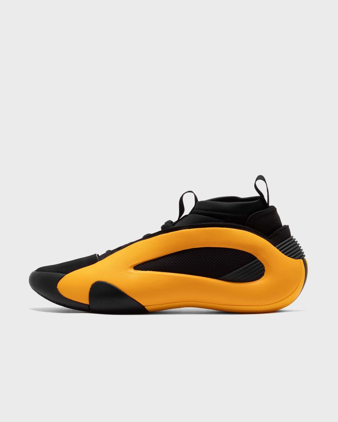 The adidas Harden Volume 8 has a sleek black textile upper. It is complemented by a stretchy, sock-like cuff and a black synthetic leather toe cap. The bright yellow EVA cage provides improved lateral support. The teardrop-shaped frame merges into a full-length Jet Boost midsole. The rubber outsole with JH traction pattern with herringbone tread provides excellent grip and rounds off the design. Article Number: IG6589 Gender: Men Color: CREYEL/CBLACK/SILVMT Material: Upper material: 100% Synthetic/Textile