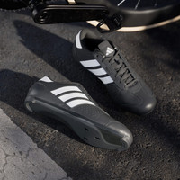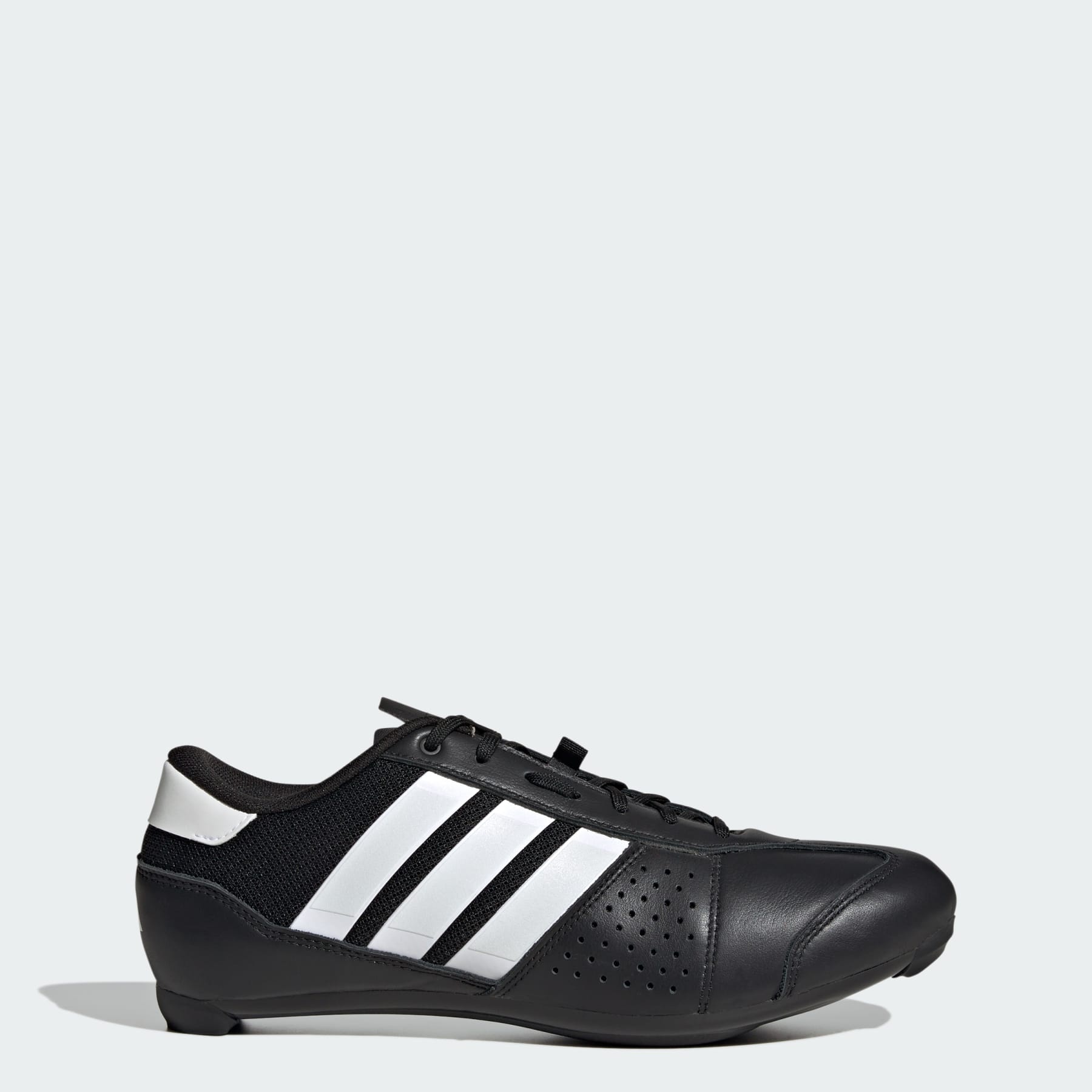 Leather lace-up cycling shoes with road cleat compatibility. The adidas Heritage Road Cycling Shoes honor cycling's rich legacy with a modern take on iconic lace-up road shoes. These full-grain leather cycling shoes combine the latest tech with a classic cycling style. Well-ventilated, their unique instep-hugging design creates a comfortable fit with a locked-in feel for aggressive pedaling. A fiberglass-reinforced plate delivers efficient power transfer, and they're three-hole road pedal cleat compatible. Non-slip outsole pads add stability when you're off the bike, and 360-degree reflectivity enhances low-light visibility. Details - Regular fit - Lace closure - Mesh upper with TPU overlays and elastic tongue wings - Breathable - Molded sockliner - Three-bolt cleat compatible synthetic outsole - Reflective details - Imported - Product code: IH5220 - Product color: Core Black / Cloud White / Cloud White