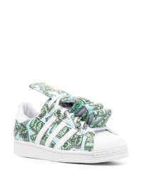 HP6596 printed sneakers from adidas featuring green, white, calf leather, all-over graphic print, round toe, front lace-up fastening and flat rubber sole. Size & Fit HEEL: 3cm Sole height: 2.5cm Fabric and Care Designer Style ID: HP6596 Designer Colour: FTWWHT/FTWWHT/GOLDMT Composition: Sole: Rubber 100%; Outer: Calf leather 100%; Lining: Fabric 100%Made in Indonesia